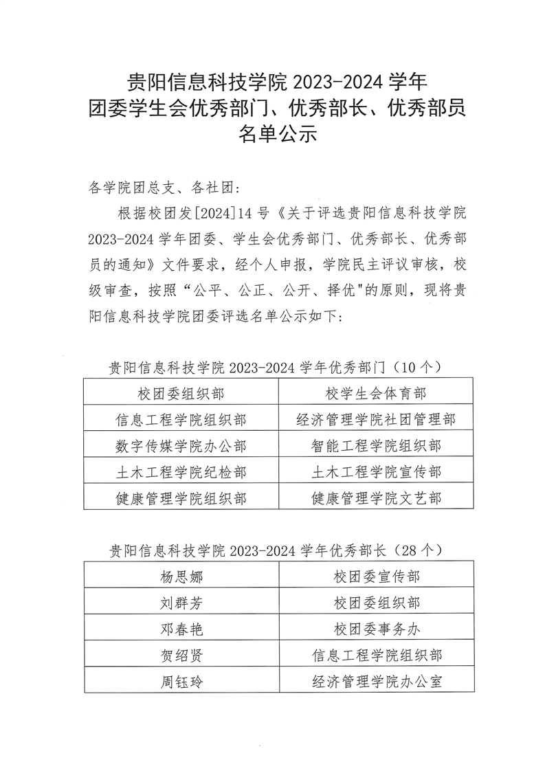 Beat365唯一官方网站 2023-2024 学年团委学生会优秀部门、优秀部长、优秀部员 名单公示