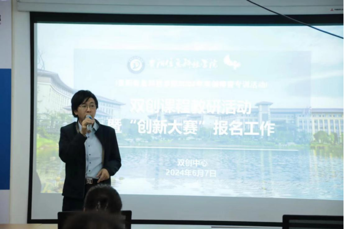 双创中心罗晓梅老师提到,为推进双创教育与专业教育有机融合,学校特设系统性创新创业课程体系。以理论教学结合竞赛实践的方式培养学生的创新思维与创业精神,促进学生将专业知识与双创实践融合转化,将开设《创新创业实践》课程,同时,为了扩充师资队伍,会开展一系列校内外的师资培训,提升老师的竞赛指导水平与双创教学水平。此外,还对前期教学检查工作中出现的问题进行整改,并对下学期任课工作作出安排。