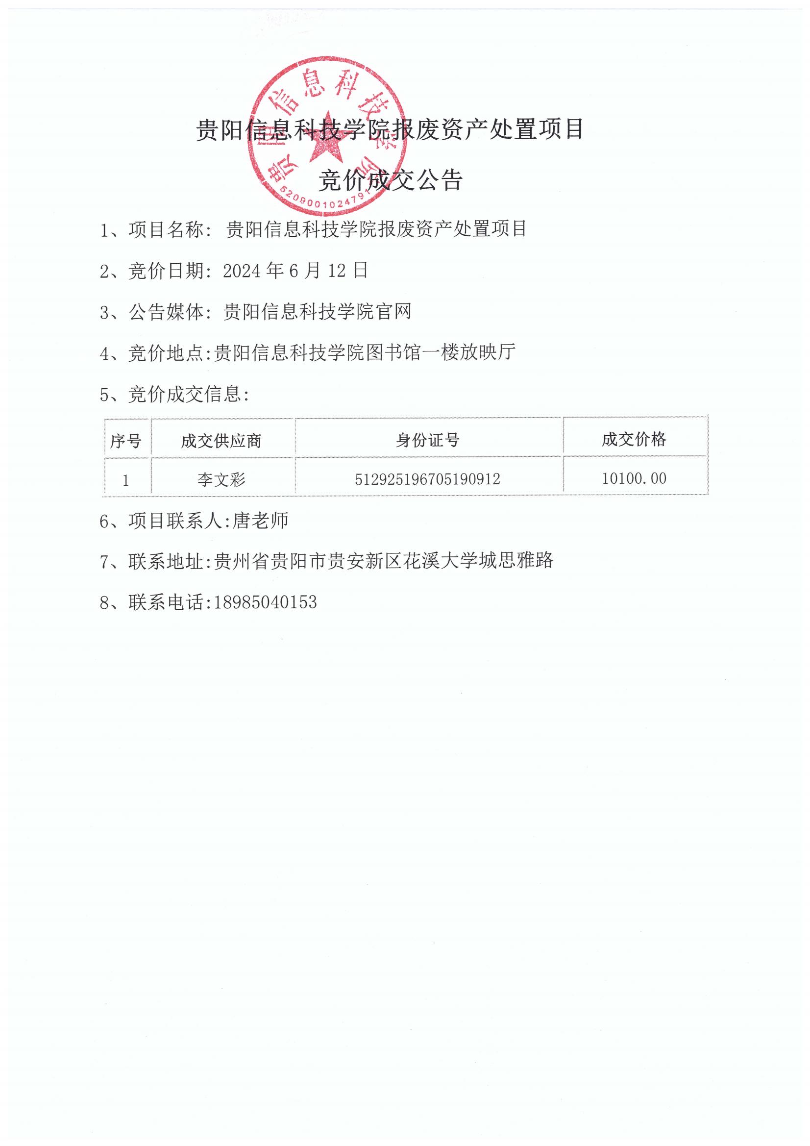 Beat365唯一官方网站报废资产处置项目竞价成交公告
