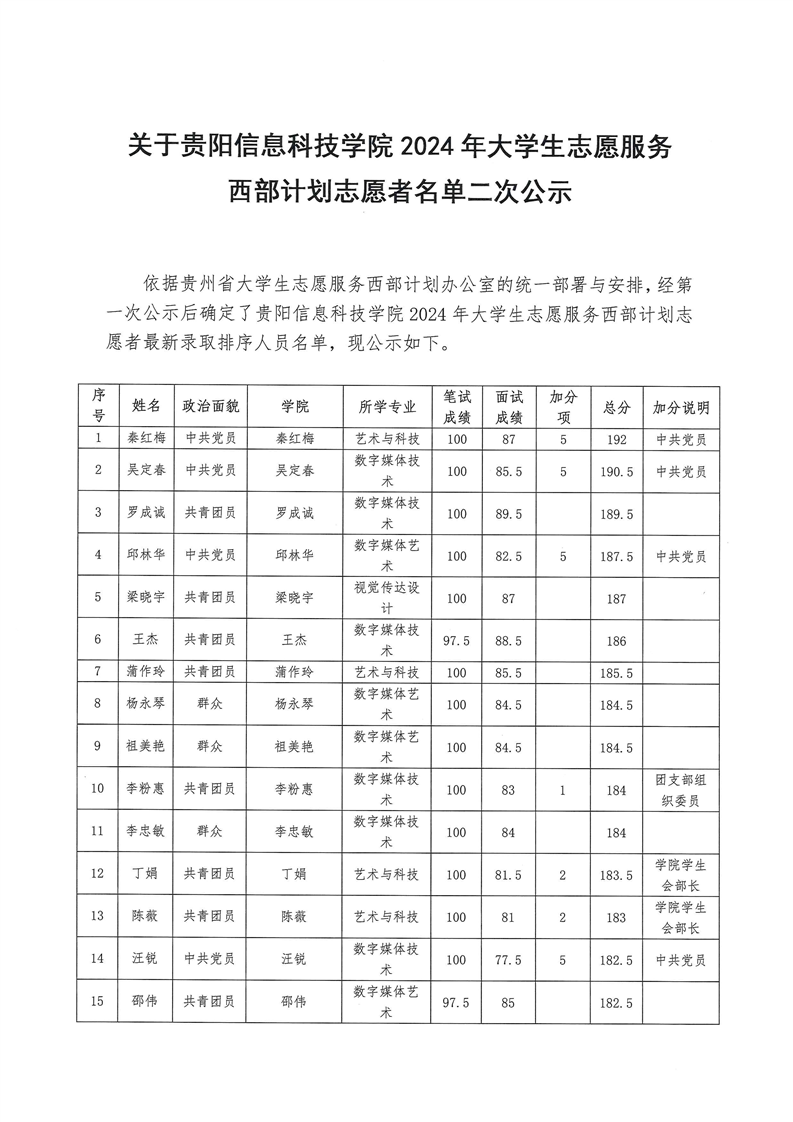 关于Beat365唯一官方网站 2024年大学生志愿服务西部计划志愿者名单二次公示