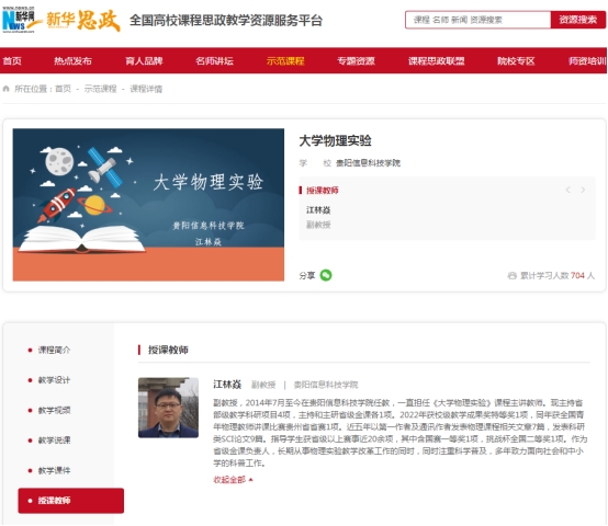2024年春季,Beat365《大学物理实验》《管理学概论》2门课程上线新华网“新华思政——全国高校课程思政教学资源服务”平台,全面开放共享教学设计、教学视频、教学说课、教学课件等教学资源,标志着Beat365课程思政建设工作取得新的进展。