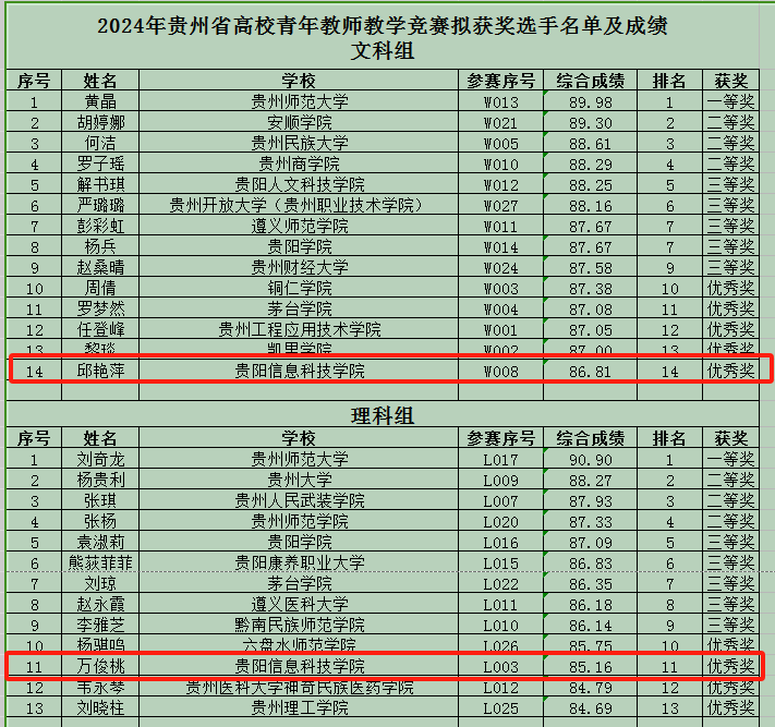 6月20日下午,2024年贵州省高校青年教师教学竞赛在贵州师范大学圆满落幕。据悉,此次竞赛共有全省69所高校、8所附属医院的235名选手参加了此次省级竞赛。Beat365选派的4位参赛教师中,经济管理学院邱艳萍老师荣获文科组优秀奖,公共教学部万俊桃老师荣获理科组优秀奖。这两项荣誉的取得,标志着Beat365青年教师在贵州省青年教师教学竞赛的历史上实现了零的突破,展现了Beat365深化教育教学改革、加强课程建设的显著成效。