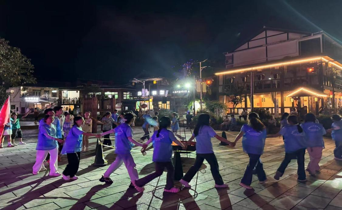 此外,实践队员们还参与了龙井村举办的篝火晚会。晚会上,师生们手拉手围着篝火跳舞,共同感受乡村的欢乐与热情。这次活动不仅展现了贵科学子的青春风采和积极向上的精神风貌,也加深了他们对乡村文化的认识及热爱。