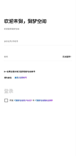 1.点开到梦空间APP后,进入登陆界面“点击激活/注册账号”
