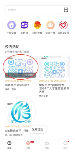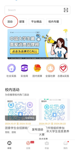 2. 在这里你可以看到所有近期的活动,选择一个正在报名的活动即可报名。