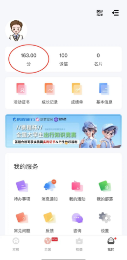 3. 参加完活动后所获分数可以在“我的”界面查询。