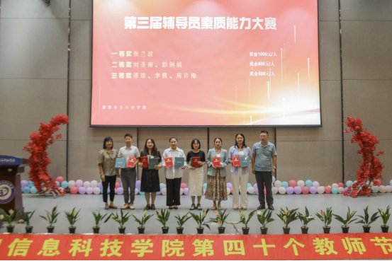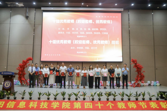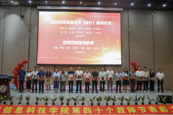 在表彰大会上,副校长罗卫东宣读了《Beat365唯一官方网站关于2024年教师节表彰的决定》,宣读了Beat3652023-2024学年度表现优异的42名教师和3个团队的名单:数字传媒学院张桢尧团队、公共教学部江林焱团队、土木工程学院张涟英团队荣获“贵州省教师教学创新大赛”三等奖;经济管理学院邱艳萍、公共教学部万俊桃荣获“贵州省青年教师教学竞赛”优秀奖;石润等10名教师获“优秀毕业论文(设计)指导教师”荣誉称号;邓磊等8名教师获“优秀双创指导教师”荣誉称号;刘琦等13名教师获“优秀教师(十佳教师、校级名师)”荣誉称号;赵欢等4名教师获“优秀教师(十佳教师、校级名师)”提名奖;张兰波等6名辅导员获“第三届辅导员素质能力大赛”一二三等奖项;此外,还对冯毅,杨涛,刘江平,周红武4名“荣退教师”颁发了荣誉证书及奖金。