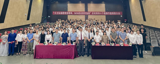 省教育厅(省委教育工委)民办高校党组织书记、学校党委书记邓维实代表学校向全校教职工致以节日的问候,并作题为《躬耕杏坛育桃李,初心如磐谱华章》的讲话。他带领全体教职工回顾总结了过去一年来学校在教育教学、科学研究等方面取得的优异成绩,并对全体教职工提出三点期望。一是希望大家成为对党忠诚、理想坚定、品德高尚的楷模。全体教职工要自觉传承好“明理厚德 崇实担当”的校训精神,真正做到对党忠诚、理想坚定,胸怀天下、志存高远,履行好“为党育人,为国育才”的使命担当。二是希望大家做学高身正,潜心育人,严于律己的人民教师。全体教职工要争做时代的“大先生”,做学生为学、为事、为人的示范,严以律己,勇于担当,练就干事创业的过硬本领,浇花浇根,育人育心,努力培养社会主义合格的建设者和接班人。三是希望大家爱岗敬业、积极工作,做甘于奉献的人民教师。全体教职工要严守“四有”“三者”好老师的标准,落实好习近平总书记对思政课教师提出的“六个要”的要求,做“讲情怀”“讲奉献”的好教师,用心、用情、用力为学校增光添彩,营造积极良好的校园文化氛围。