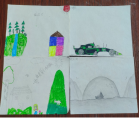一笔一画都是情,一词一句皆有意。美术组的支教队员以“我的家乡”为主题,激发学生们对绥阳县的想象。随后为培养学生们的发散思维,支教队员让他们充分运用大自然的产物作画,将大自然与艺术相结合,达成美妙的共鸣。