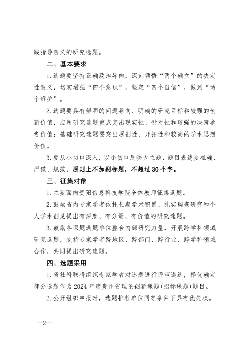 Beat365唯一官方网站关于征集2024年度贵州省理论创新课题(招标课题)选题的通知