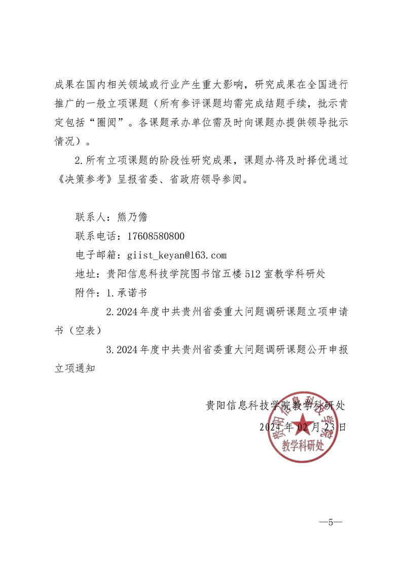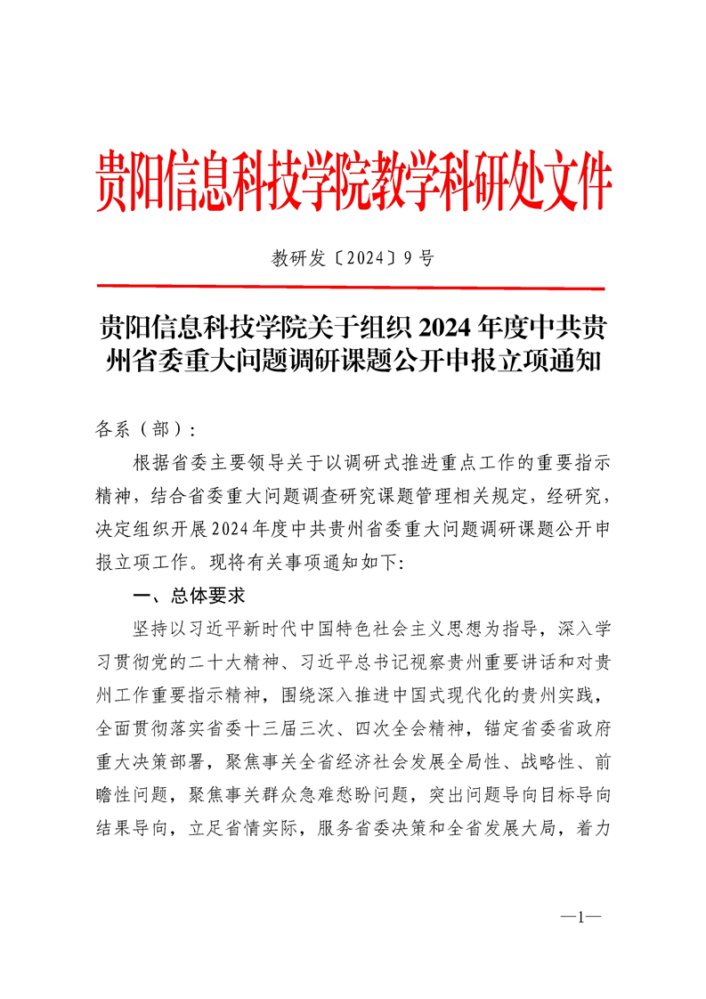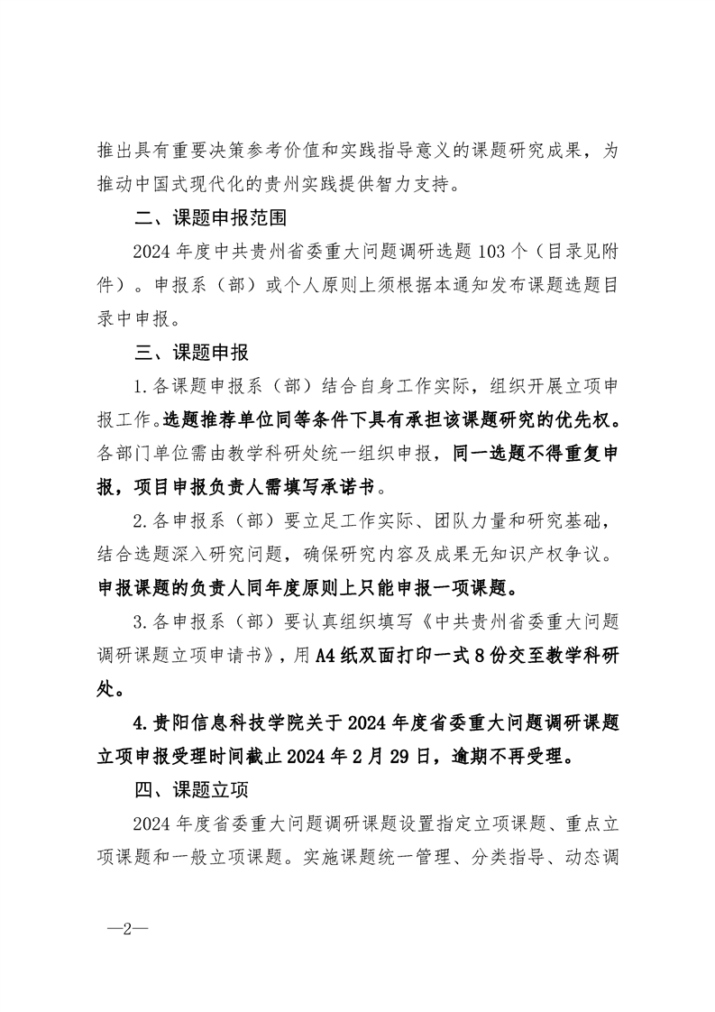 Beat365唯一官方网站关于组织2024年度中共贵州省委重大问题调研课题公开申报立项通知