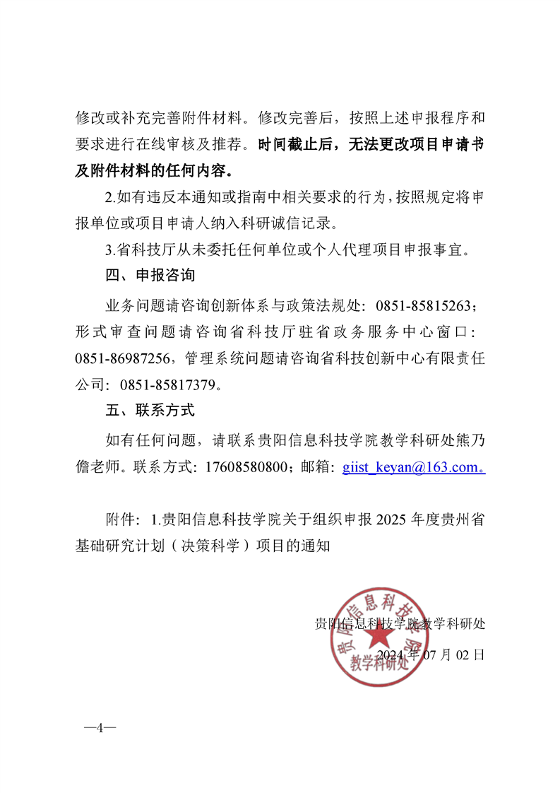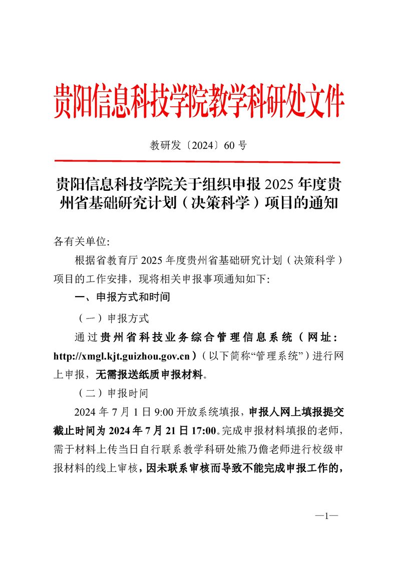 Beat365唯一官方网站关于组织申报2025年度贵州省基础研究计划(决策科学)项目的通知