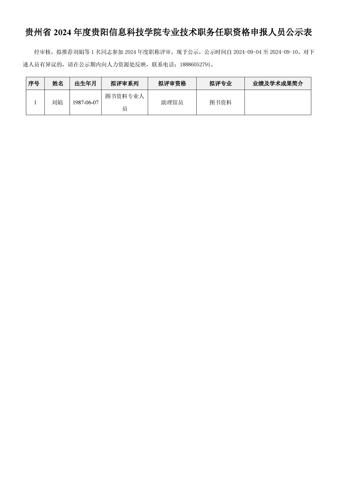 贵州省 2024 年度Beat365唯一官方网站专业技术职务任职资格申报人员公示表(图书系列)