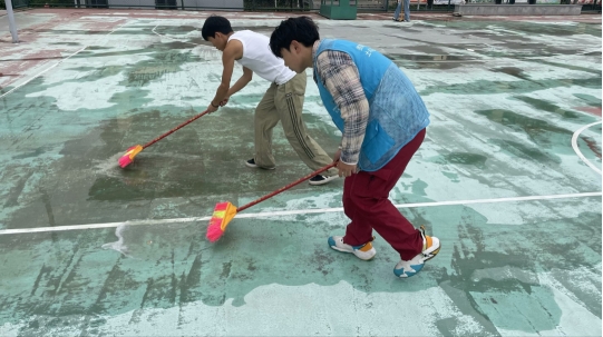在比赛前夕,工作人员手持扫帚和拖把,穿梭于球场之间,清扫每一处可能影响比赛安全的积水,确保场地处于最佳状态,为即将上演的精彩对决提供了一个完美的竞技平台。