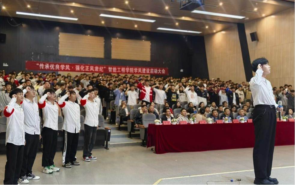 新闻网讯(供稿 智能工程学院/供图 党群工作部)为加强学风建设,改善学风,营造良好的育人氛围,不断提高学校教育教学质量和人才培养质量,10月21日中午,智能工程学院在图书馆二楼报告厅举办了以“传承优良学风·强化正风肃纪”为主题的学风建设启动大会。学校校长(首席治校专家)唐建荣教授,副校长罗卫东,党委委员、纪委书记黄晓儒,校长助理李锐锋出席大会。学生工作处处长,各党总支书记,智能工程学院全体教师及2024级学生干部参加。大会由智能工程学院团总支书记马瑞主持。