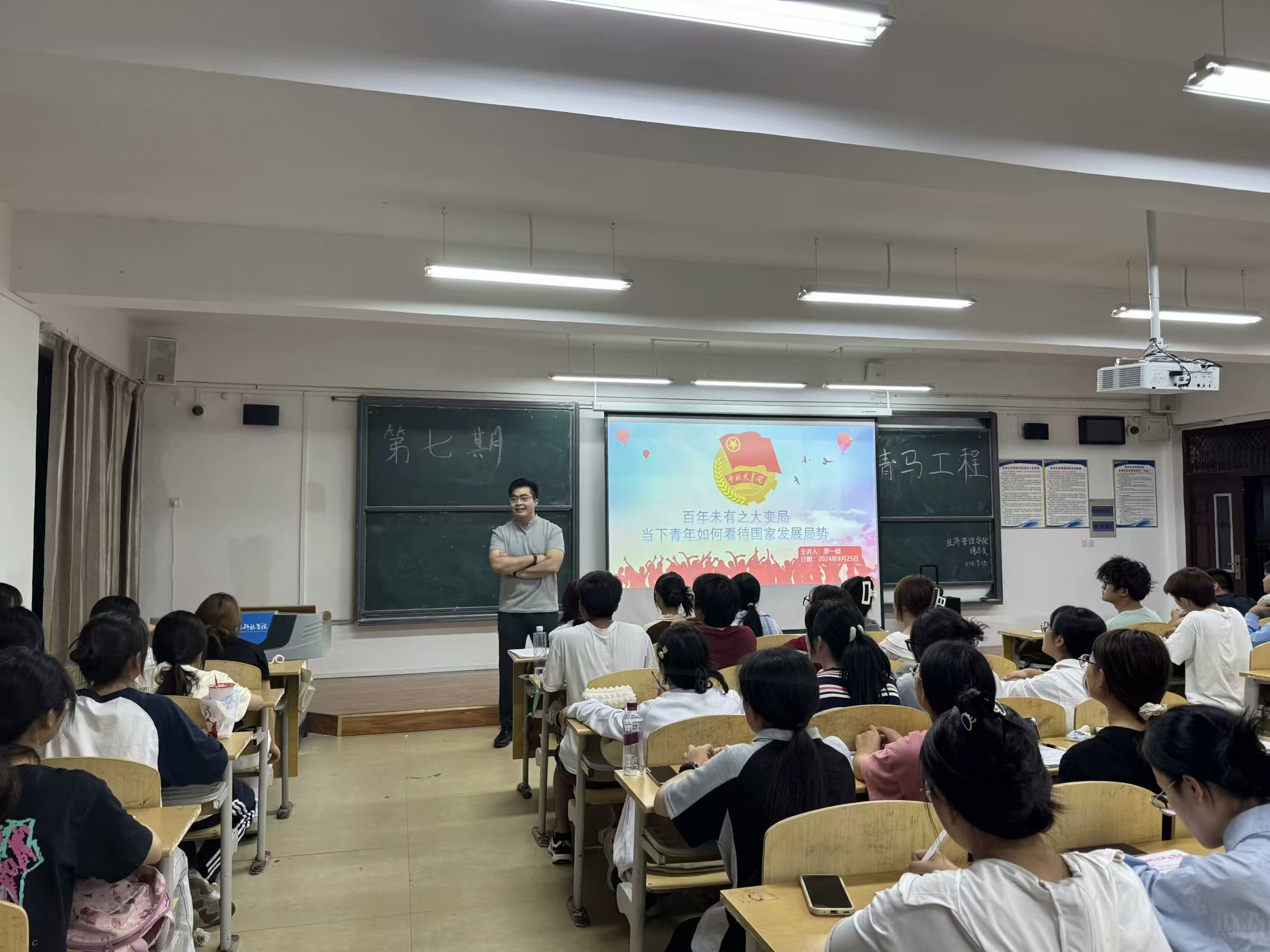 9月25日,罗一檾老师以“百年未有之大变局:当下青年如何看待国家发展局势”为主题,结合国家当前的发展形势进行全面分析,见解独到,同学们受益匪浅。他指出,当前世界正处于百年未有之大变局中,国家发展面临着前所未有的机遇和挑战,作为新时代的青年,要保持清醒的头脑,正确看待国家发展局势,积极投身国家建设,为实现国家繁荣富强贡献自己的力量。罗老师的授课深入浅出,让同学们对国家发展局势有了更加清晰的认识。
