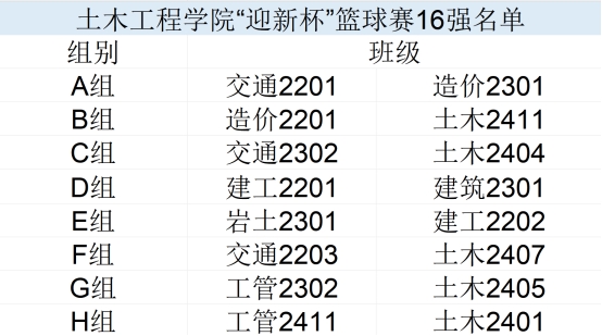 新闻网讯 (供图 供稿 土木工程学院张鹏)经过三周紧张而又激烈的比拼,土木工程学院“迎新杯”篮球赛的16强名单正式揭晓。在这段充满挑战与激情的赛事中,来自各班级的篮球健儿们纷纷登场亮相,他们凭借高超的球技和坚韧不拔的拼搏精神,为观众们献上了一场场精彩赛事。