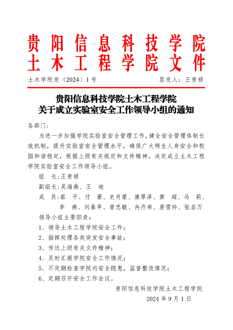 Beat365唯一官方网站土木工程学院关于成立实验室安全工作领导小组的通知