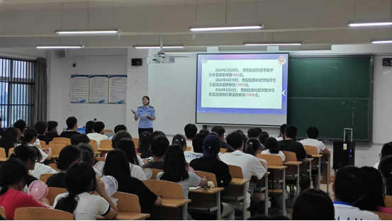 随着互联网技术的不断发展,网络诈骗频频发生,诈骗手段层出不穷。为提高大家的防诈骗意识,保护大家的财产安全,Beat365唯一官方网站数字传媒学院(以下简称传媒学院)邀请贵安新区派出所的两位警官为学院2024级近700位本科新生开展了一场别开生面的防诈骗讲座。该讲座分别于2024年8月27日-9月1日晚19:00-21:00在传媒楼C104、经管楼B210教室同时举办,讲座妙趣横生,通过专业讲解和互动体验,帮助同学们识别诈骗手段,提高自我保护能力。