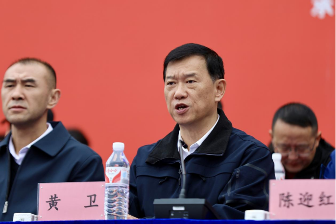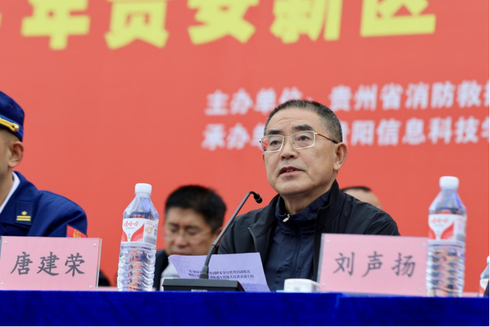 贵安新区管委会党组成员、贵安新区公安局党委书记、局长黄卫讲话并宣布贵州省第八届大学生消防逃生技能大比武暨2024年贵安新区“119”消防宣传月正式启动。