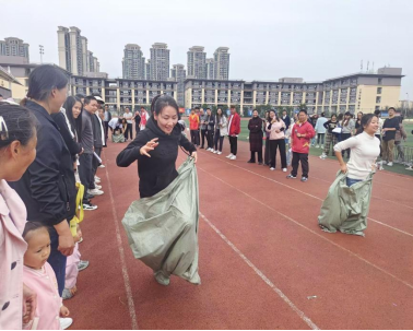 气球运送大作战比赛充满童趣,现场尖叫声此起彼伏。比赛中,老师们紧密配合,充分展现团队协作能力。