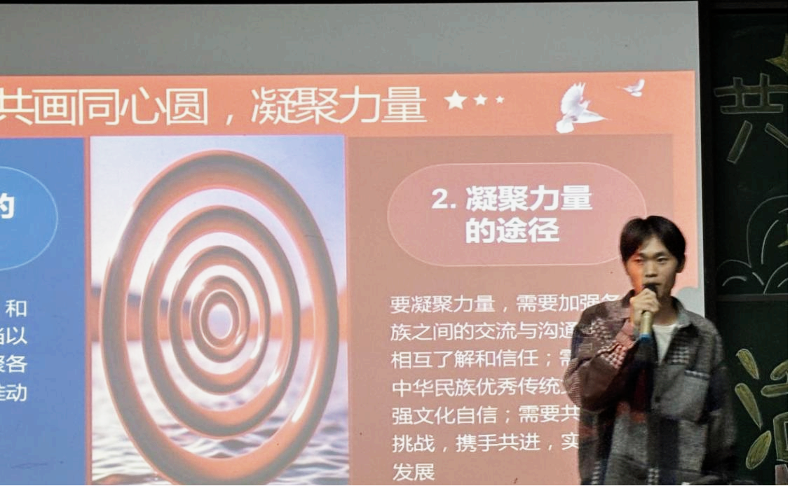 经过初赛的激烈选拔,共有6支参赛队伍从31支队伍中脱颖而出,成功晋级决赛。决赛现场,选手们精神焕发,围绕“民族大团结,共画同心圆”的主题,通过视频展示、手工作品展览、现场演讲等多种创意形式,展现了丰富多彩的团组织生活。一幅幅精美的手工作品和团支部精心制作的民族团结主题视频,随着比赛的深入逐一呈现,赢得了现场观众的阵阵赞叹。每一件作品都凝聚着同学们对中华民族文化和民族团结的深刻认识与理解。