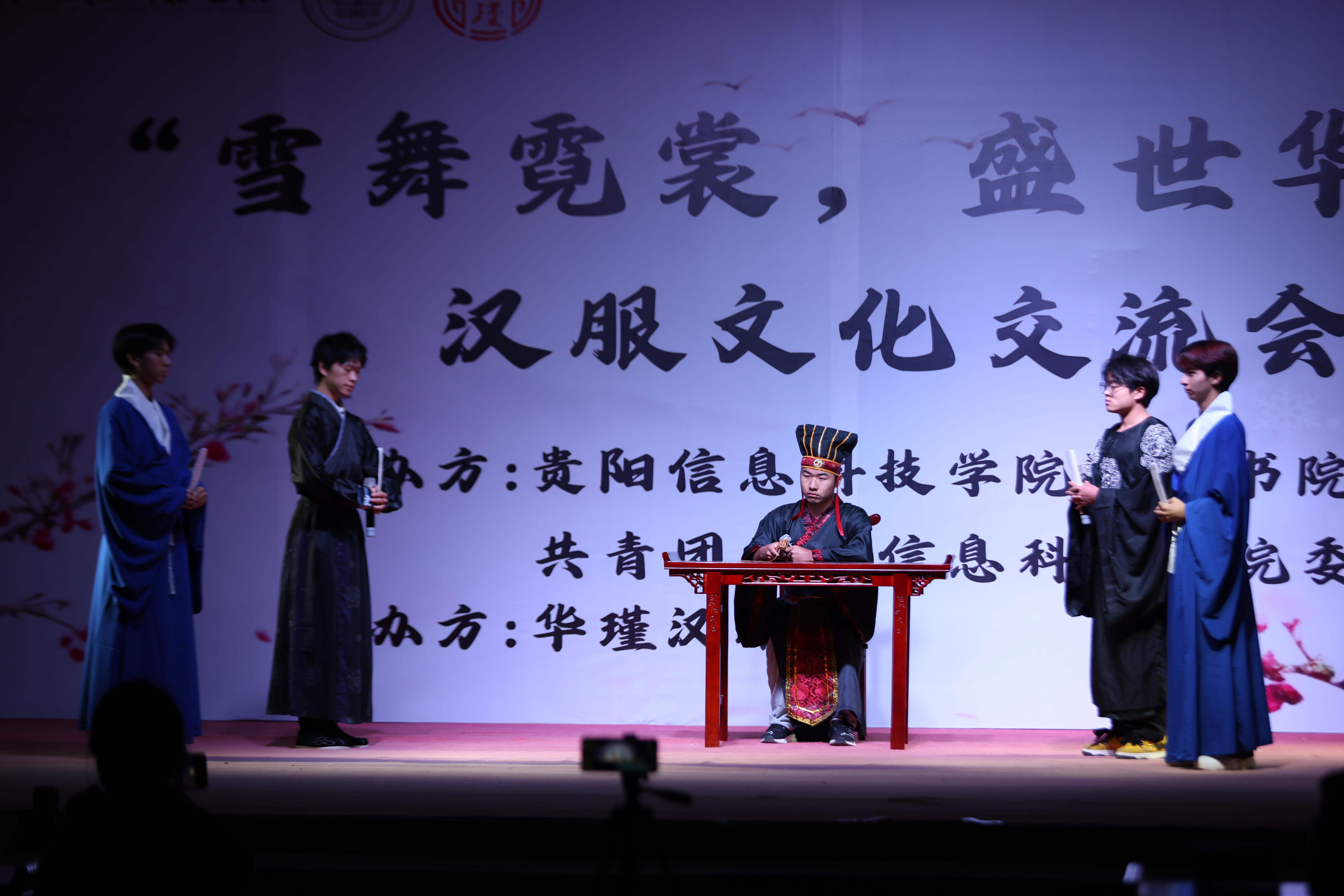 活动通过奏乐、舞蹈、走秀、话剧等形式式展演了10余个节目,向现场师生展示了汉服的历史文化与青年风采。节目精彩纷呈,肖瑶老师古琴吟诵的《临江仙·滚滚长江东逝水》大气磅礴,元青书院刘子涵老师古琴演奏的《离骚》表现屈子风骨,话剧《烛之武退秦师》展现忠勇智慧,汉服社走秀的《十二生肖》呈现了丰富的生肖形象与深厚的文化底蕴,贵州大学汉风府的舞蹈《椒花颂声》灵动可爱,贵州财经大学知行国学社的舞蹈《探窗》婀娜多姿。