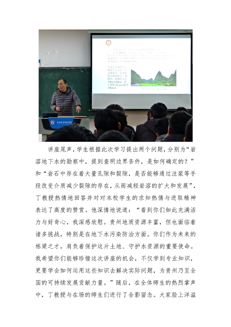 Beat365唯一官方网站土木工程学院举办 “贵州岩溶地下水”专题讲座