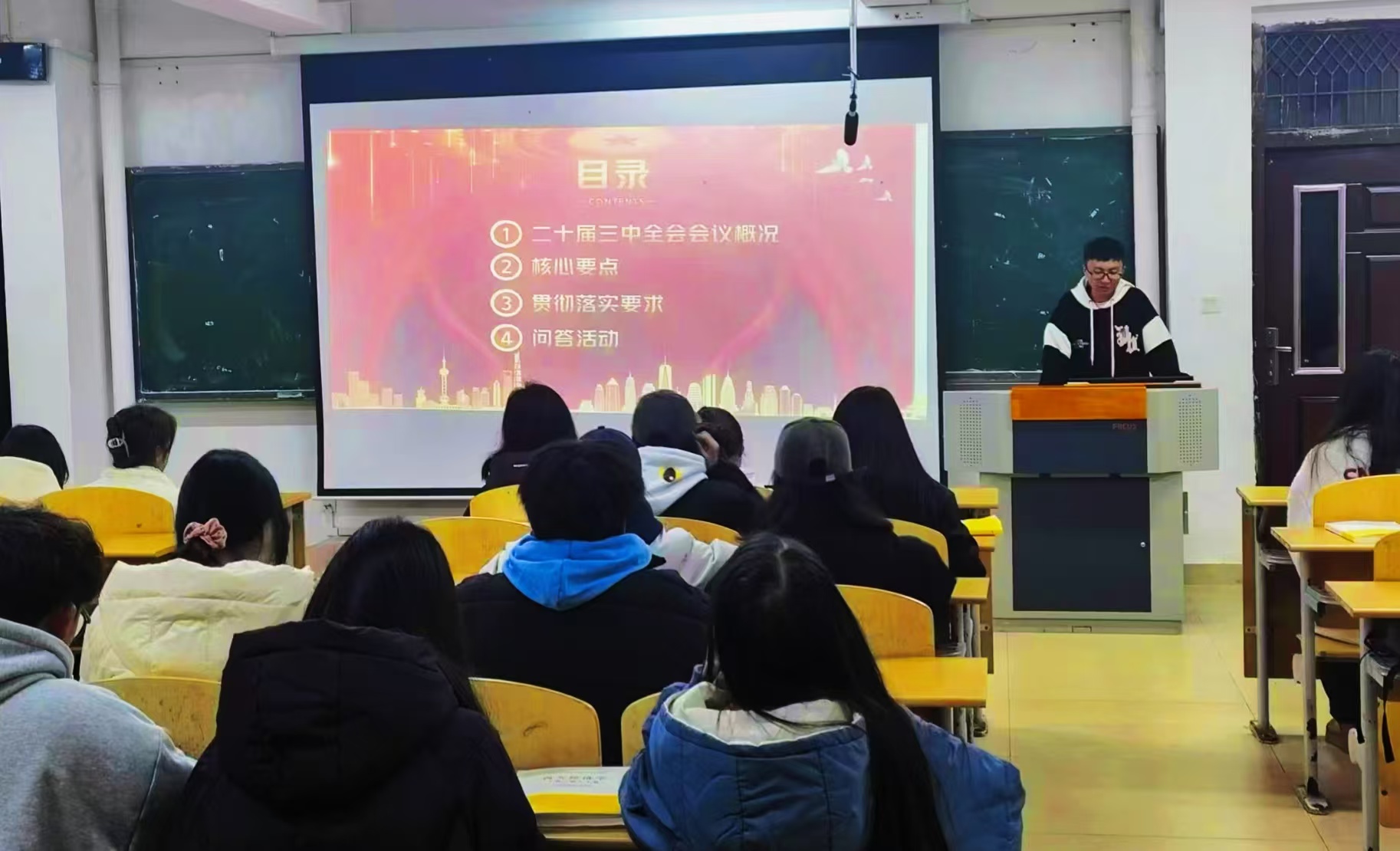 此次宣讲阵容强大,由经济管理学院学生第三党支部的领航者——支部负责人领衔,携手学生党员代表、发展对象和入党积极分子,他们化身“精神使者”,穿梭于市场营销、人力资源管理等班级及学生寝室之间,以饱满的热情和深刻的见解,铺陈开一幅幅全会精神的绚丽画卷。