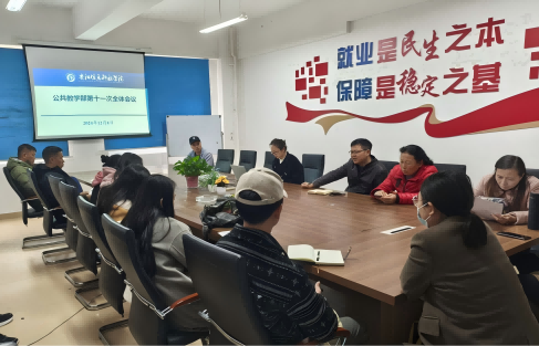2024年12月4日,公共教学部第十一次部门例会在A栋205召开,江林焱老师主持会议,与会人员包括数学教研室、外语教研室、基础体育教研室、数字技术教研室、物理教研室的全体教师。