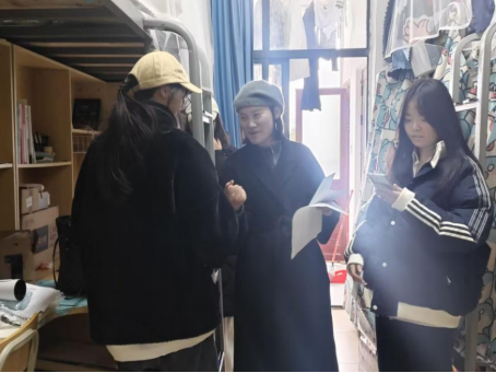临近期末,老师们与同学们亲切交流,询问着近期学习生活情况。关怀学生期末备考情况,对学生在生活方面遇到的困难提出建议,给予帮助同时,老师们在向学生强调违规电器的隐患之余,还给学生科普了管制刀具的种类以及危害,提升同学们的安全意识,呼吁同学们与学校一同创造一个安全、舒适的宿舍环境。