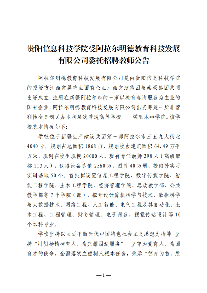 Beat365唯一官方网站受阿拉尔明德教育科技发展有限公司委托招聘教师公告
