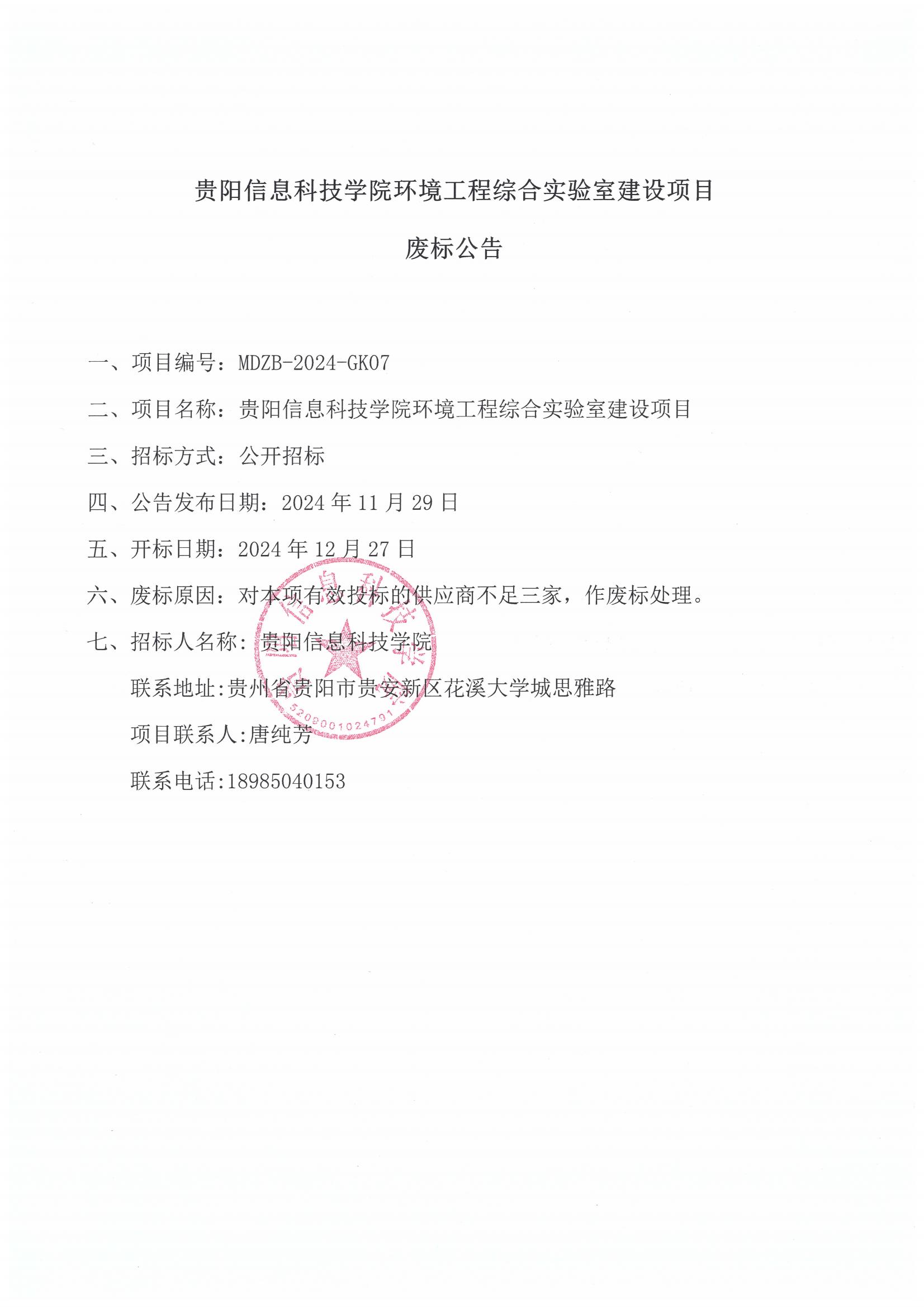 Beat365唯一官方网站环境工程综合实验室建设项目废标公告.pdf