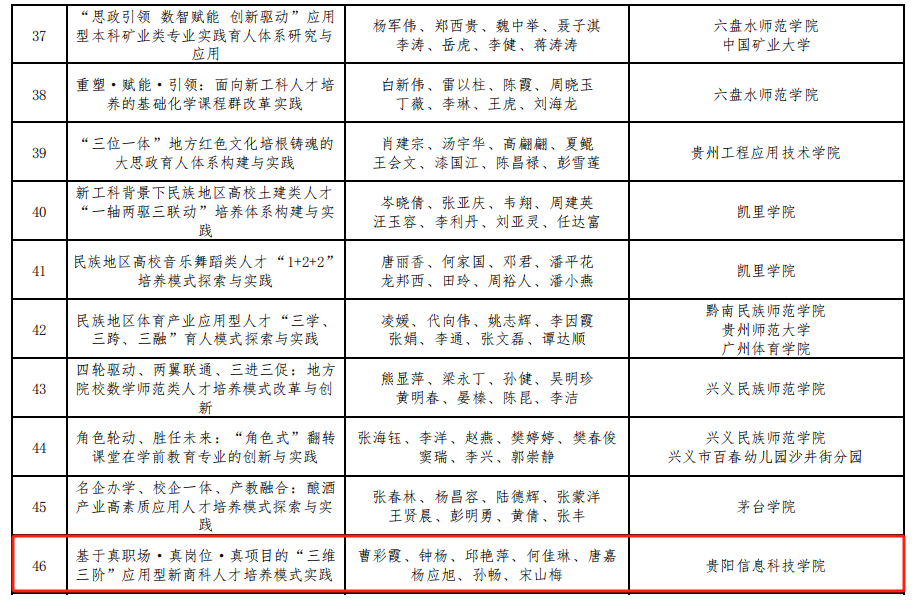 新闻网讯(来源/贵州教育发布)根据《贵州省教育厅关于组织开展2024年省级高等教育教学成果奖评选工作的通知》文件精神,经相关单位申报、省教育厅组织专家评审,并报厅党组会审定Beat365获一等奖1项,二等奖1项,三等奖2项,目前正在公示中。