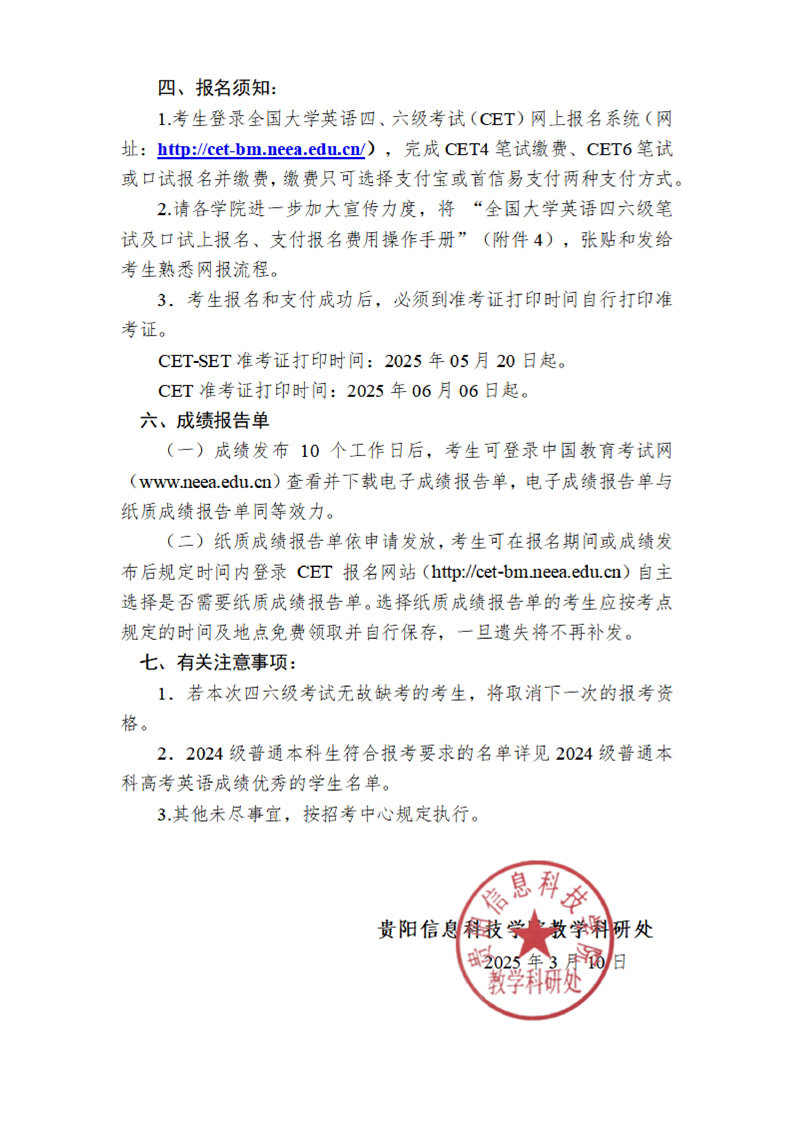 关于做好2025年上半年全国大学英语四、六级考试报名工作的通知