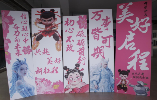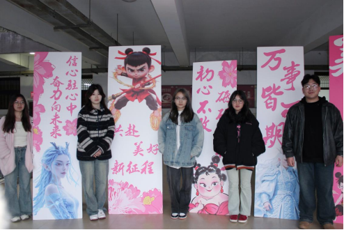 活动开始之前,数字传媒学院结合《哪吒2之魔童闹海》中的动漫人物,设计了打卡kt版,同时设计了签到墙、答题赢零食等环节,前来报到的同学们可以选择自己喜欢的动漫人物进行打卡拍照。该活动既满足了当前同学们关注的热点话题,也涵盖了新学期数字传媒学院的老师对同学们的期望和祝福。