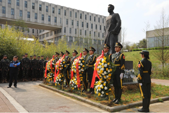 活动现场庄严肃穆,气氛凝重。师生们怀着崇敬之心齐聚塑像前。校国旗护卫队步伐整齐、身姿挺拔,迈着坚定的步伐向烈士敬献花篮。鲜艳的花朵,寄托着师生对先烈的深切缅怀与无限敬仰。