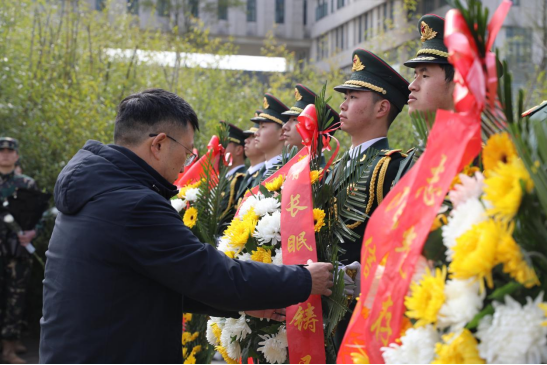 随后,全体人员肃立默哀。缅怀为国家独立、民族解放牺牲的先烈。默哀结束,师生们逐一上前献花,以表追思。