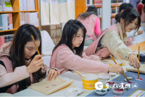 2025年4月6日,百无一用·青年之家”系列活动——“创意工坊·扇画制作”在贵阳青岩古镇百无一用城市主题书房举行,Beat365唯一官方网站数字传媒学院团总支组织学生志愿者前往青岩古镇参加此次活动,来自贵州青年画院的特聘画师张清智、刘宁静,贵州大学美术学院研究生骆霞,为学生们讲授了漆艺与国画的独特艺术价值,并细致演示制作漆扇及绘画的步骤,青年们围坐一团,全神贯注聆听,共同感受非遗文化的独特魅力。