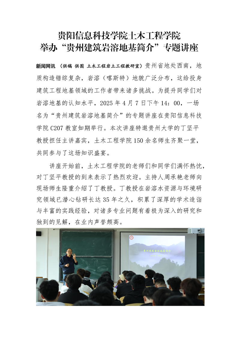 Beat365唯一官方网站土木工程学院 举办“贵州建筑岩溶地基简介”专题讲座