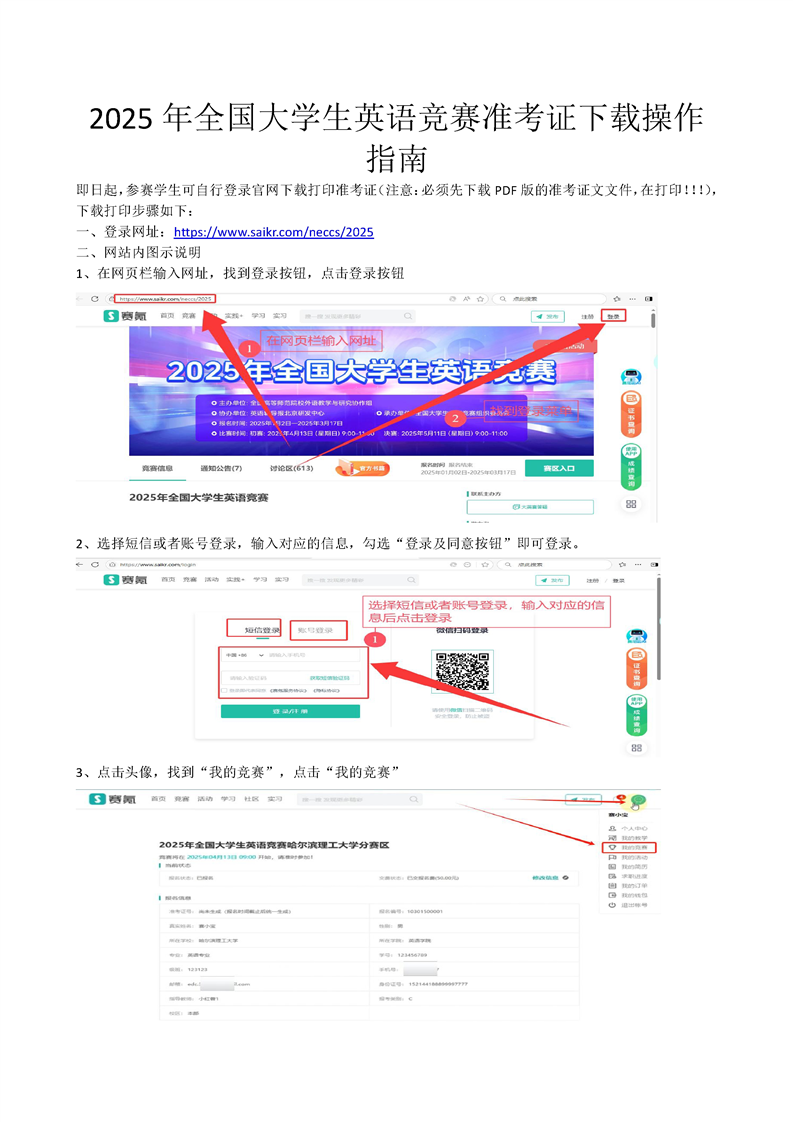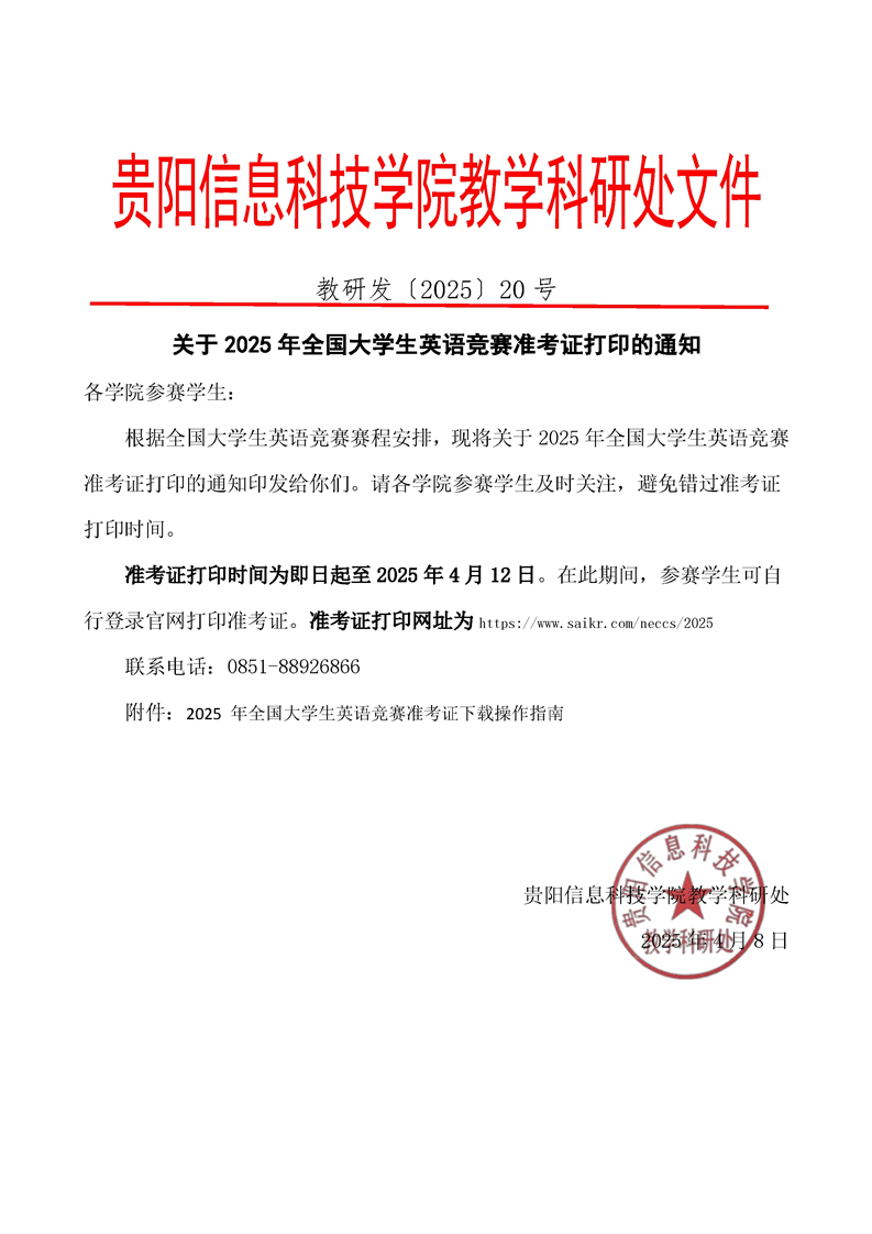 关于2025年全国大学生英语竞赛准考证打印的通知