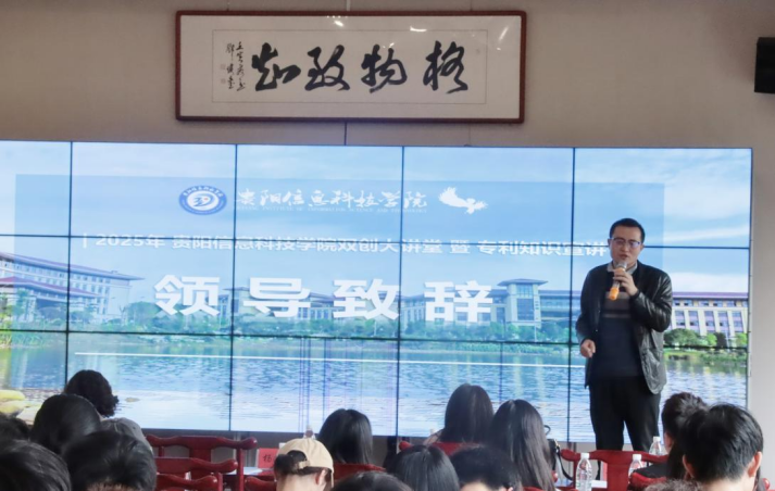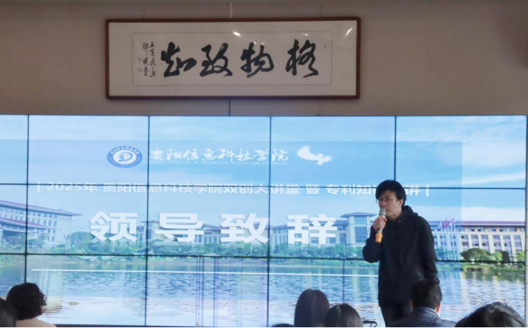 副校长杨波在致辞中强调,“创新成才、创业报国”是学校双创教育的核心理念,知识产权工作不仅是提升学校科研竞争力的关键抓手,更是服务区域经济发展的重要纽带。他提到,近年来学校通过规范专利申请流程、建立成果转化激励机制,已推动师生完成30余项专利转化,涵盖大数据、智能制造等领域,为贵州产业升级注入创新动能。