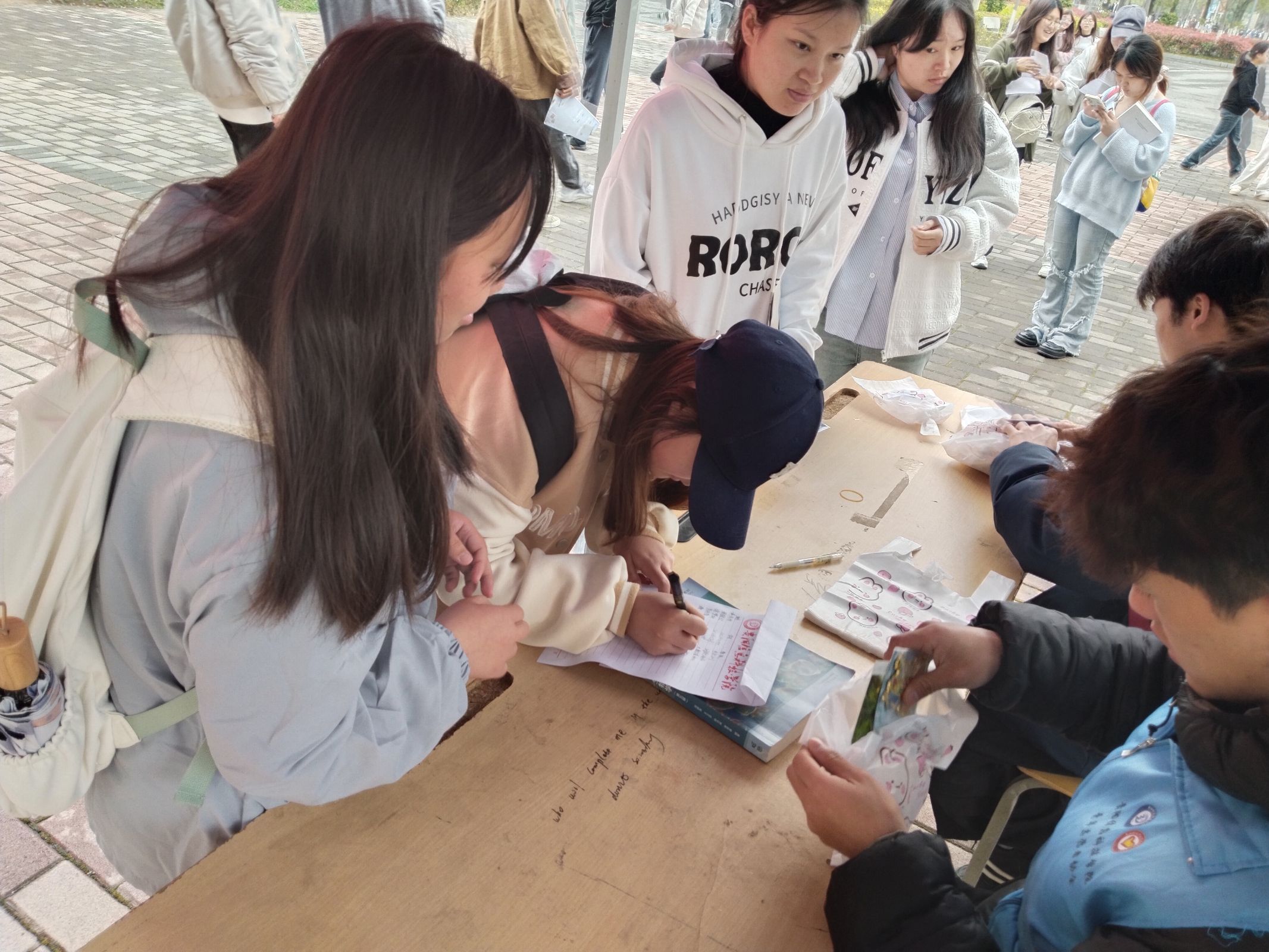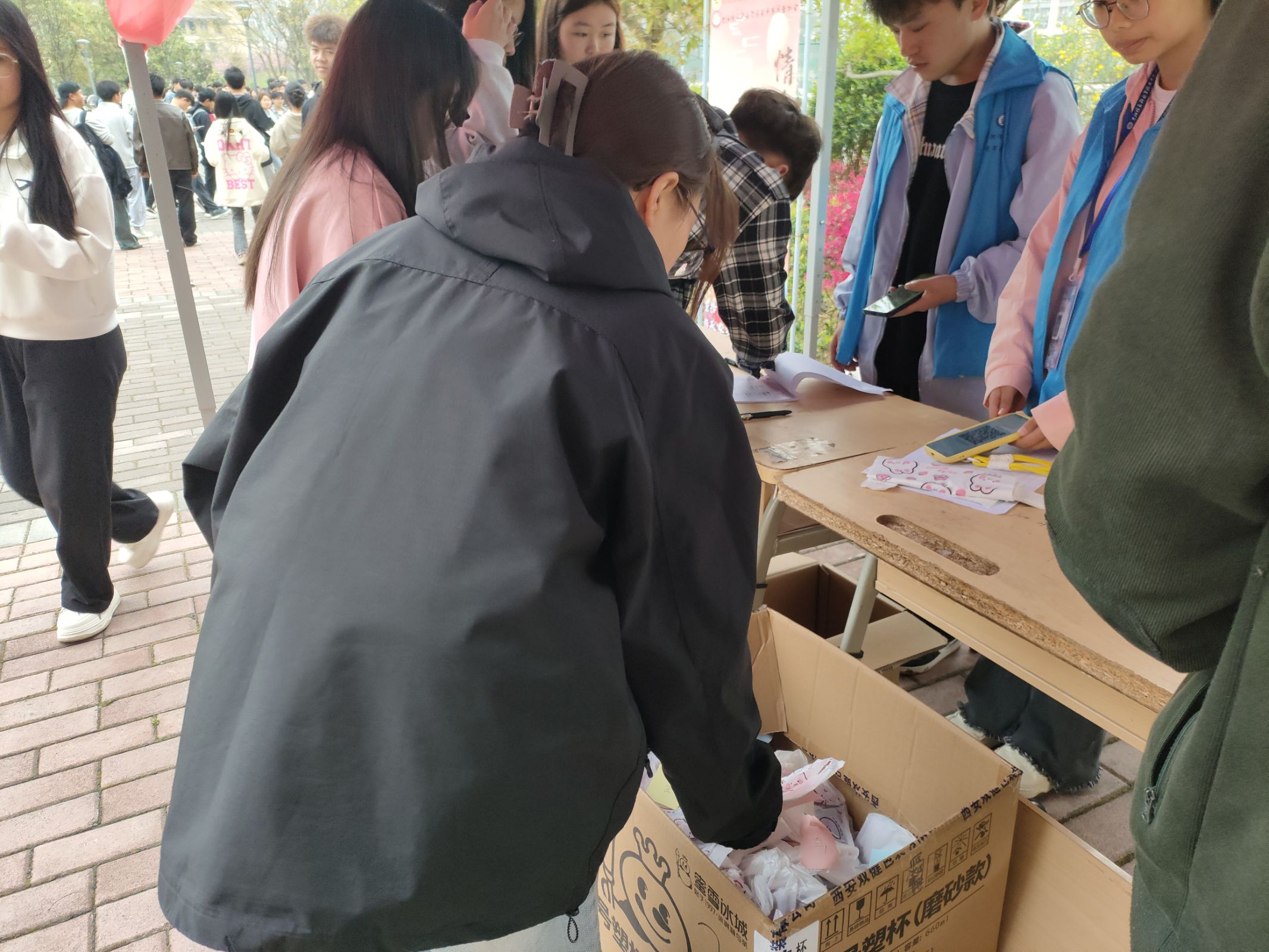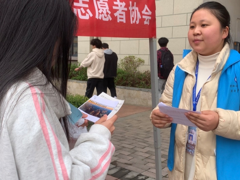 第一天,志愿者们在学校体育场门口进行摆点并收取参与人员的作品。
