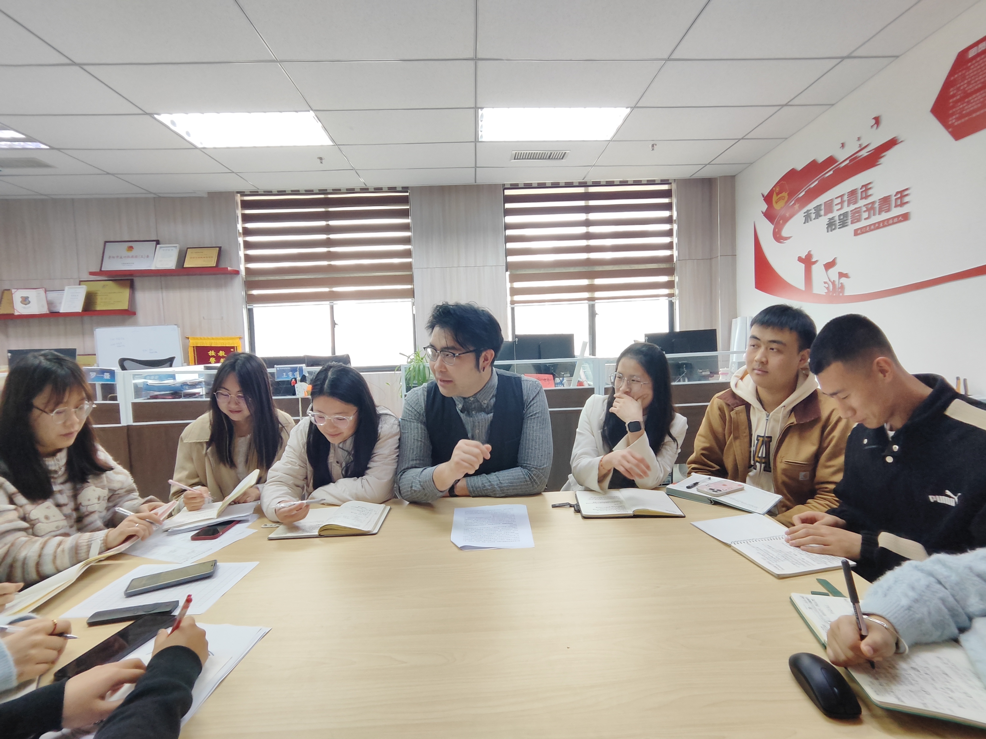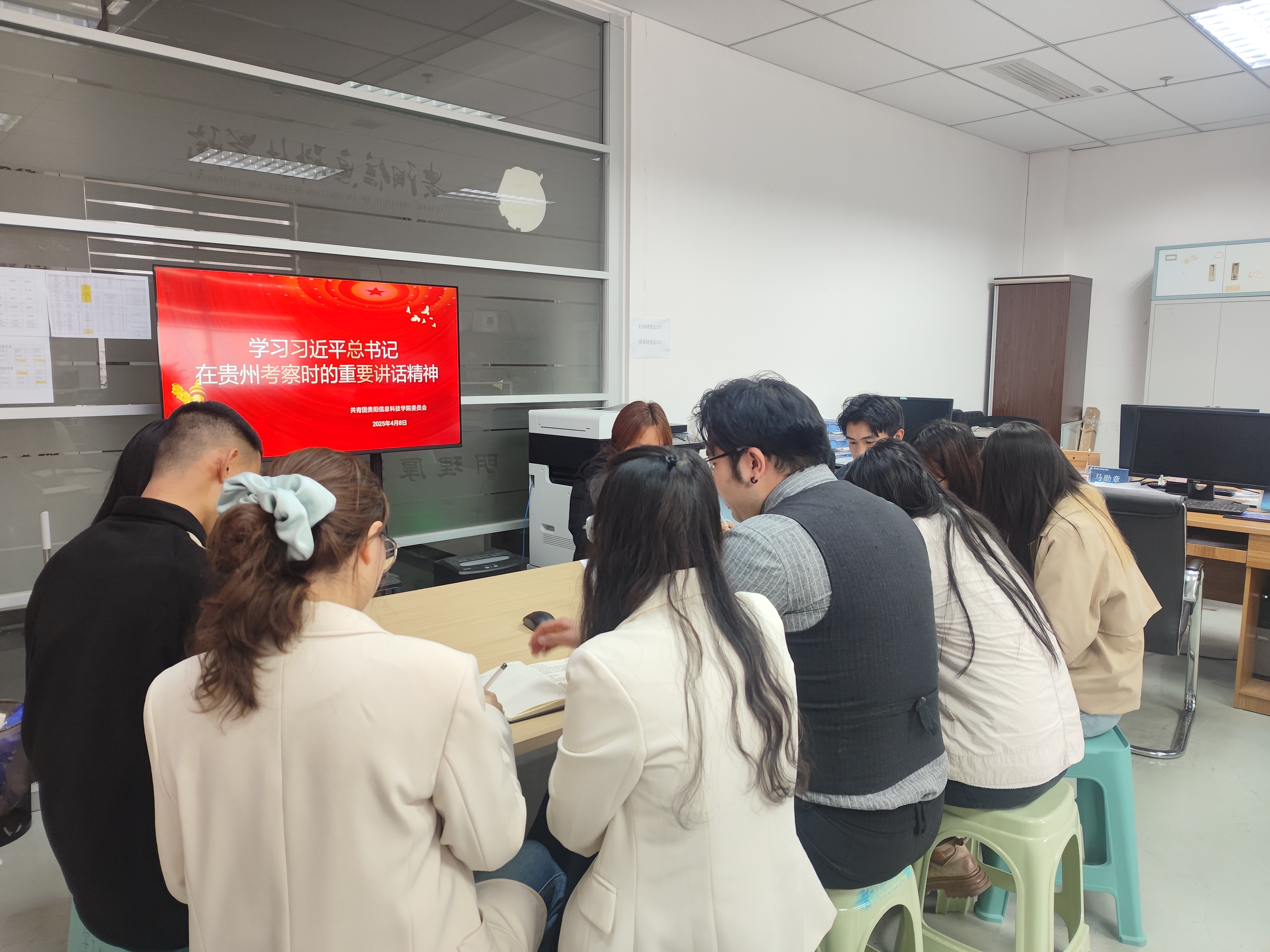 4月8日,我校团委于团委516办公室组织召开了学生委员会工作例会,深入学习贯彻习近平总书记在贵州考察时的重要讲话精神。会议由团委副书记(主持工作)罗一檾主持,团委全体老师及学生委员会主席团全体成员参加。