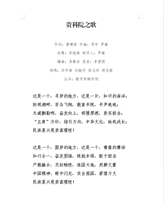 本次比赛通过各班级现场录制视频形式提交作品,由学生代表组成评审团进行初步筛选,最终由教师团队综合评定。比赛中,新生们以校歌《贵科院之歌》为基底,结合班级特色,通过民族乐器伴奏或方言朗诵,不仅赋予了校歌新的艺术表达,也展现了智能学子对校训精神的理解与传承。