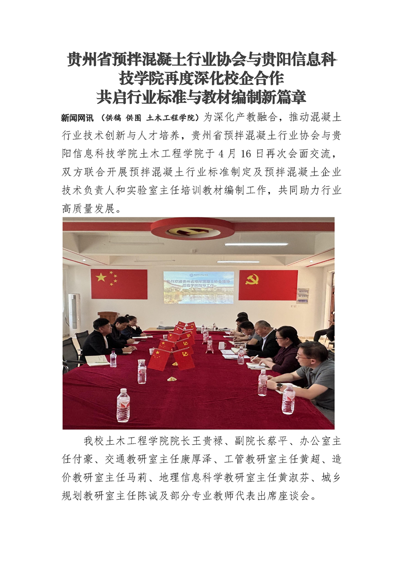 贵州省预拌混凝土行业协会与Beat365唯一官方网站再度深化校企合作 共启行业标准与教材编制新篇章