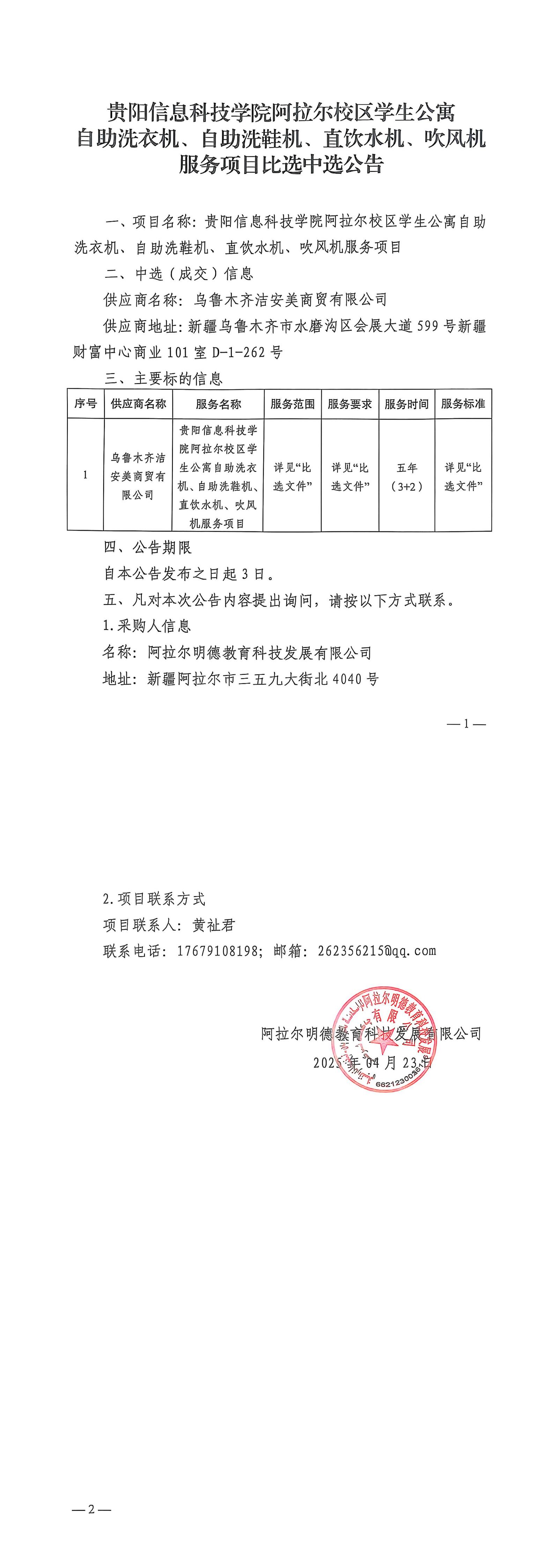 Beat365唯一官方网站阿拉尔校区学生公寓自助洗衣机、自助洗鞋机、直饮水机、吹风机服务项目比选中选公告