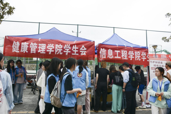 信息工程学院学生会×健康管理学院学生会:这对“技术派CP”用艾草、薄荷制作驱蚊香囊,现场演示“防虫黑科技”,吸引大批“技术粉”围观。