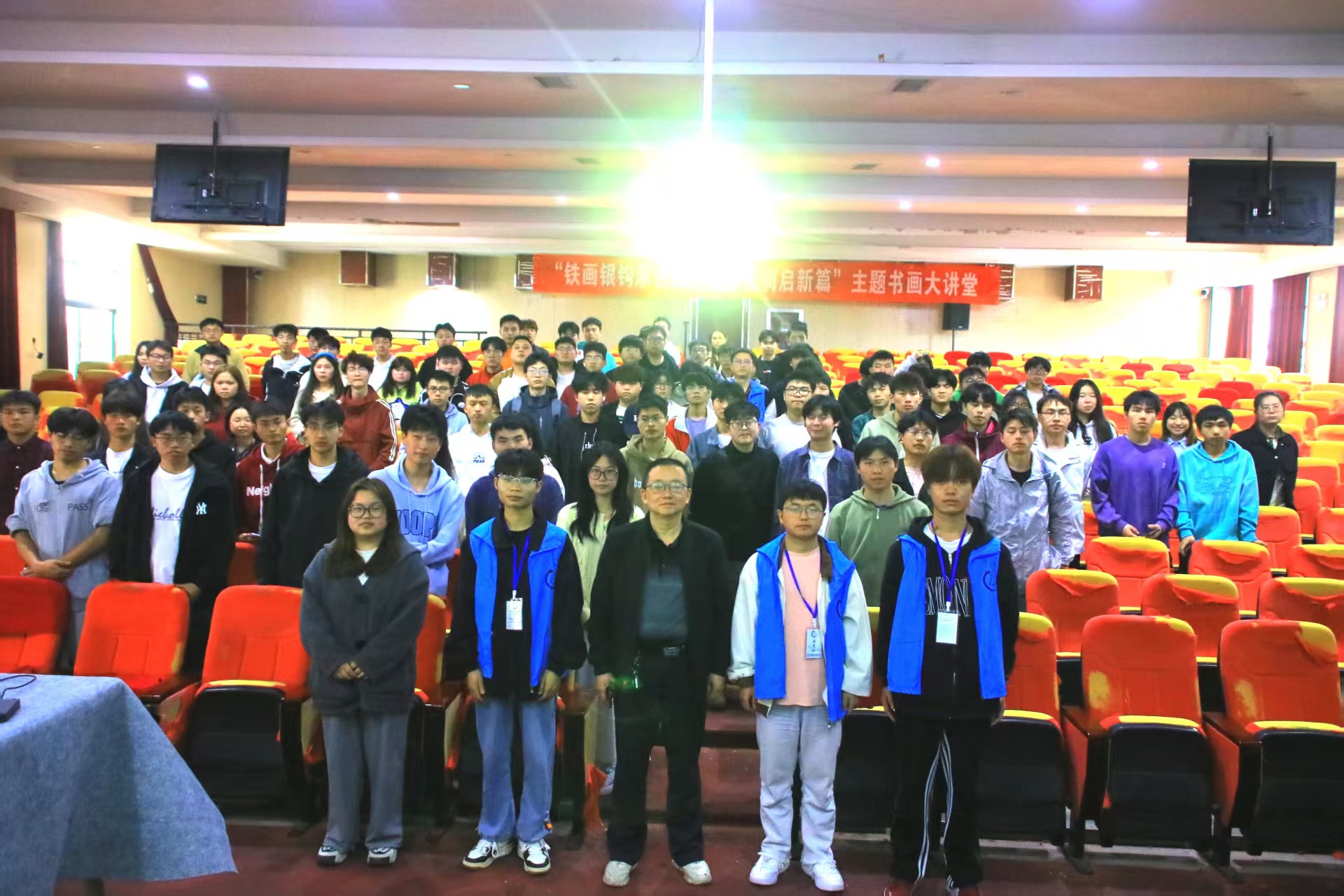 书法是汉字书写的基础,也是美育的重要组成部分。为响应教育部“书画进课堂”的号召,增强学生对传统文化的认知与兴趣,帮助学生从书画中领悟笔墨之美,培养专注力与审美能力。Beat365唯一官方网站丹青社于4月27日在学校一号报告厅举办“铁画银钩承古法,墨香纸润启新篇”主题讲座。花溪文联主席石文辉出席本次活动。
