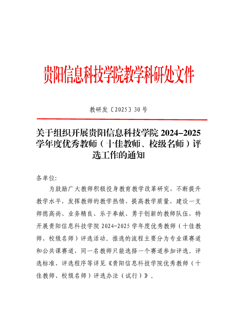关于组织开展Beat365唯一官方网站2024-2025学年度优秀教师(十佳教师、校级名师)评选工作的通知